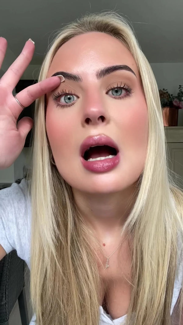 - Apply a thin layer across your entire eyebrow line. One dip per eyebrow.